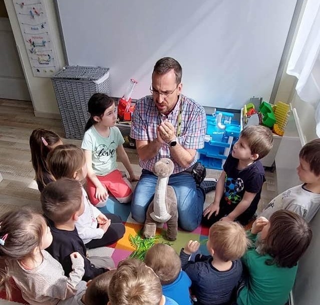 Minden hónapban eljön hozzánk Gergő bácsi, aki roppant izgalmas dolgokat mesél nekünk a természetről, állatokról, növényekről. Minden alkalommal sokat tanulunk tőle.